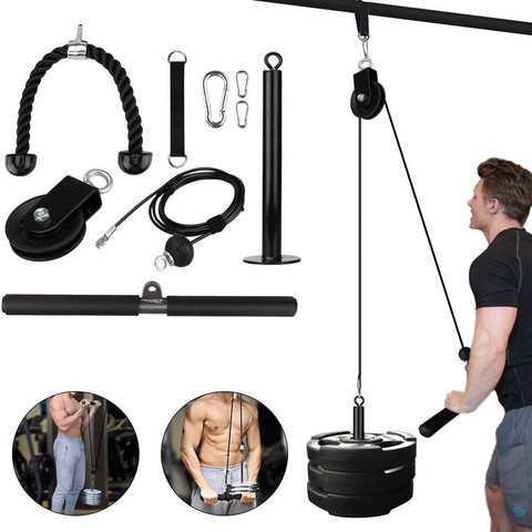 Fitness pulley cable gym workout equipment machine attachment system home diy.